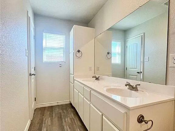 Vinyl plank flooringStainless steel appliancesTub showerDouble vanityCustom cabinets