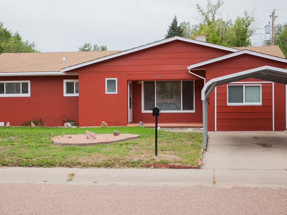 Come check out this updated home! With new flooring, paint, kitchen cabinets and roof this home is in great condition. The three bedrooms are good sized with new floors. The kitchen has upgraded cabinets and all the appliances are in great condition. The bathrooms feature tile floors and glass shower door. The backyard is spacious with a covered patio, covered grill pad, enormous storage shed and new privacy fence. There is a car port for off street parking. Close to Fort Carson, shopping and schools this home is situated well.