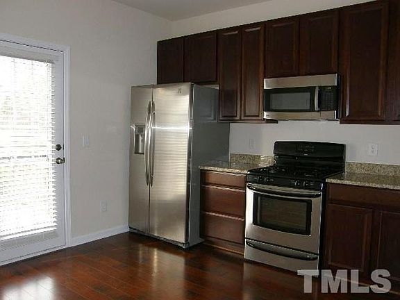 End unit w/hardwood flrs and ceramic tile. 3rd flr MA with his/her WIC, dual sinks,garden tub. 1st flr office can be used as a 3rd BR! 2nd flr w/spacious kitchen, granite countertops, cherry cabinets, SS appliances. Dining area, family w/gas fireplace. Deck off kitchen, rear-entry garage. Easy access to 540/40.Community pool, near public tennis courts & nature trails. HOA limits pets to under 35lbs. Parking for only 2 vehicles