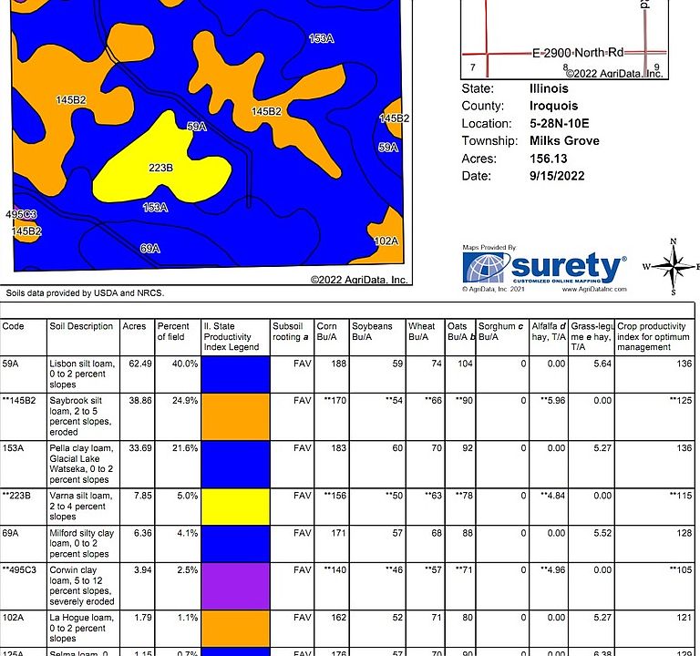 Excellent farm - no buildings- not being sold. Good tenant, good soils PI of 130.9