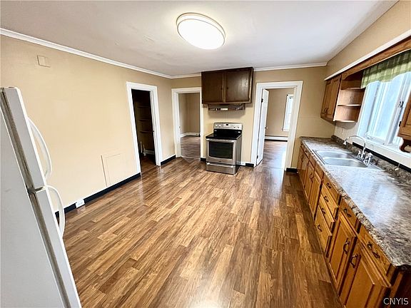 This estate is a duplex with two 1-bed/1-bath units (upper/lower). The units are nearly identical. The bedroom in each unit is enormous and could/should be turned into 2-bed units with a simple wall. The kitchens are large eat-in styles. The driveway is long and wide enough to hold 4 cars easily. There is a large 2-car garage on site too. This would be great for a storage building for an owner's inventory, or they could allow tenants to use it.