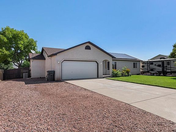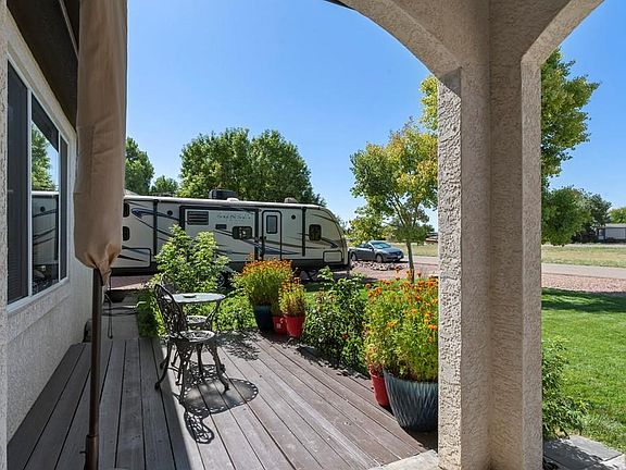Spectacular 3 bedroom 2 bathroom Ranch Style Home. Single level living at its best! This welcoming home has beautiful, mature landscape, two rock driveways on both sides of the well maintained front lawn, concrete driveway to the 2 car insulated garage, trees, flowers and a deck next to the front covered entry way. The front door is furnished with an elegant white security screen door new last year. Throughout the home is fresh paint and many updates. Living room has a large window allowing natural light, original hardwood flooring completed in 2010, The dining area has a built in desk and cabinets, french door leading to rear deck, views of pikes peak & 10 X 52' deck & yard. Kitchen has lots of cabinet space, all appliances are included and has a pantry. In 2017 new dishwasher, sink, garbage disposal and granite kitchen countertops. The microwave & electric range/oven was new in 2016. The 3 bedrooms include new carpet installed in July 2019,. The master bedroom & the 2nd bedroom have glass sliding doors to the back deck. Master bedroom has a full master bathroom with new granite countertops. The furnace & central air conditioning was installed in October 2015, new roof in January 2016, Hot tub added to the home in September of 2017. New solar and upgraded electrical panel to 200 amp was installed in March 2018. The back yard also has a patio with a fully furnished outdoor kitchen with fireplace and grill, shed, Boat & RV parking & easement access through back drive gate.