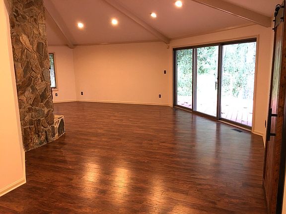 Great location and beautifully redone describe this 3/2 home on large, private lot. The open floor plan with vaulted ceilings, an abundance of kitchen cabinets with new granite countertops and backsplash, and a dining area and great room with large stone fireplace make this a great place to entertain. The master bedroom has an extra large walk-in closet with plenty of room for chests or dressers for extra storage and the master bath is WOW! Double vanities, beautiful tile, wood ceilings and custom barn doors will make you never want to leave home. A large deck, small pond, treehouse and covered storage area make this home complete. New roof 8/2020 and new HVAC and duct work 2017. Make your appointment today.