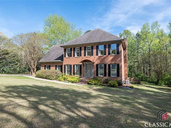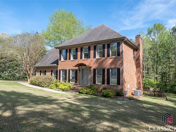 Welcome to 113 East Creek Bend. This stately renovated 4 BR 2.5 BA brick home offers light and bright rooms with warm hardwood floors throughout the first level. Formal Living and dining rooms connected by inviting foyer and staircase leading to the second level. Stylish updated half bath. Large, comfortable family room with fireplace adjacent to updated well appointed kitchen with custom cabinetry, solid surface counters, contemporary subway tile and an abundance of entertaining spaces including a large center island. Cheery breakfast nook, dedicated laundry room, walk-in pantry and utilitarian two-car garage access beyond. Kitchen back door leads to spacious and private deck with yard access. Upstairs there is a generous owner's suite with large spa-like bathroom with two sinks, soaking tub as well as a large walk-in shower. There are two additional bedrooms with a dedicated bathroom as well as a larger flex room that can serve as a media room, play room or fourth bedroom. Ample storage and closet spaces on this floor including two walk-in closets in primary and secondary bedrooms. This home sits on .96 acres of private, tranquil land and is partially fenced. There is an outbuilding for gardening storage as well as a playscape for fun. Conveniently located just minutes from Barnett Shoals shopping and restaurants, The University of Georgia and downtown Athens.