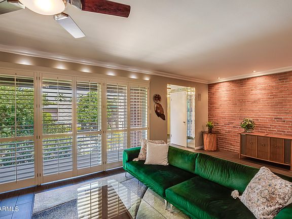 Beautifully updated and maintained in a mid-century complex nestled in the heart of the City surrounded by historic homes, museums, theatre, and restaurants! The spacious great room features a wall of windows with terrific natural light, exposed brick and room for wall art galore! Kitchen has good cabinet and counter top space with separate exit to a lovely side patio for outdoor dining. The primary suite in this unit has been renovated to include a full walk-in closet, full size laundry plus storage and an exquisite custom glass, brick, and stainless bath! The primary has a private back balcony, too! Upgraded wood like tile floors and plantation shutters t/o. HOA covers nearly ALL of your costs including a/c AND property taxes! Private 1 car garage a huge plus! ***CASH ONLY COMPLEX!! ***