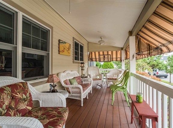 Don't miss this delightful duplex on a beautifully manicured lot, boasting details and upscale features throughout! An awning covered front porch leads to a fantastic open floor plan featuring engineered wood floors that extend throughout the main living area. The bedrooms have rugs and baths have tile. Great room includes vaulted ceilings and crown molding with a beautiful bay window in dining area. This opens to the beautiful galley kitchen with glass front cabinets, double oven, and a bright window. A pocket door opens to a lovely 3-season room with access to the large side deck. Spacious and bright, the master suite features 2 widely spaced pocket doors giving way to a huge closet, a beautiful built-in with TV area, glass doors on top and storage below. The laundry room, located off the master bedroom, hosts a door to the side deck. The expansive master bath shines with dual vanities and a jetted tub with shower. A second full bedroom is serviced by a charming full bath with corner, rounded shower stall, wainscoting and a pedestal sink. Upstairs a large deck and private entrance lead into another bright unit with a spacious living room and kitchen with center island and an eating area. Two bedrooms are serviced by the full hall bath. Completing this unit is a laundry closet with washer and dryer. Solar panels provide free electric for the main floor with a $50 to $200 credit which can be applied to the second floor unit. There is up to $3000/year tax free income from solar certificates due to the fact that seller owns the solar panels. 40 year roof warranty. The lush yard boasts wonderful landscaping, 2 sheds and 2 outdoor showers. A paver driveway easily holds two cars and leads to a one car attached garage. Live in one unit and rent the other with $1100/week summer rental income. Previous renters are interested in returning in 2017. Close to all amenities, the bay, and the beach.