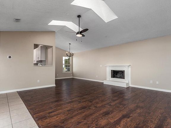 Elegant remodel in the fabulous Pelican Bay gated community! NEWER HVAC and NEST smart thermostat! Enter through double doors into this stunning home and you'll be in awe of the large open concept living room under vaulted ceilings with skylights, complete with a cozy fireplace! The renovated kitchen will wow you with its updated granite countertops, shaker cabinets, and new stainless steel appliances, all topped with a subway tile backsplash! All bedrooms keep you comfortable with plush carpet and ceiling fan lights. Relax on the lovely mosaic patio! This community offers so many amenities, you'll never get bored! Conveniently located near I-4, less than 1 hr to Orlando, and less than 20 mins to the beach! Truly a must-see!