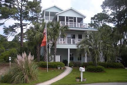 Beautiful custom home with unobstructed ocean views. Water views from every room in the house. Approximately 3,000 sq. ft. heated/air with three separate heat pump units and an additional 1,300 sq ft of decks and screened porches. Great views of the Gulf and a dedicated walkover - just 150 steps to the beach! Wood and porcelin tile floors with carpet in the bedrooms. Silestone counter tops in the kitchen with stainless steel appliances and custom oak cabinets. Mother-in-law suite on lowest level with full bedroom, half kitchen, full bath, eating area and living area with sleeper sofa. Master bath has jetted jacuzzi tub for "Two" plus shower. Observation deck on the top floor. This home is being sold completely furnished with Lexington and Tommy Bahama furnishings. Crown molding thru-out the house. Professionally landscaped with sprinkler system. Plantation shutters in living room, dining room and master bedroom. Upgraded windows and doors. Your own greenhouse in the huge backyard. Security system. Oversized one car garage with buit-in storage shelves. Our beach is pet friendly and one of the only beaches on which you can drive a golf cart/vehicle. Unlike most of Florida beaches, ours continues to build naturally due to it's proximity to the Apalachicola Bay. New airport in Panama City makes travel into the area much easier. Shown by appointment only to serious buyers. Please call 850-227-7696.Additional property info: http://www.forsalebyowner.com/listing/S0MDV?provider_id=28079
