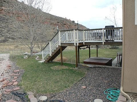 Open plan Ranch style with walkout lower level onto open space. Deck off main floor master suite with sitting/office area. Relax in your private Master jetted tub while looking at mtn views. Great entertainment deck off living/dining area. Lower level family rm, lots of light and right out the door to the Hot Tub. Fire place in living rm. Ceiling fans and skylights, Water base board heat and evaporative cooler.