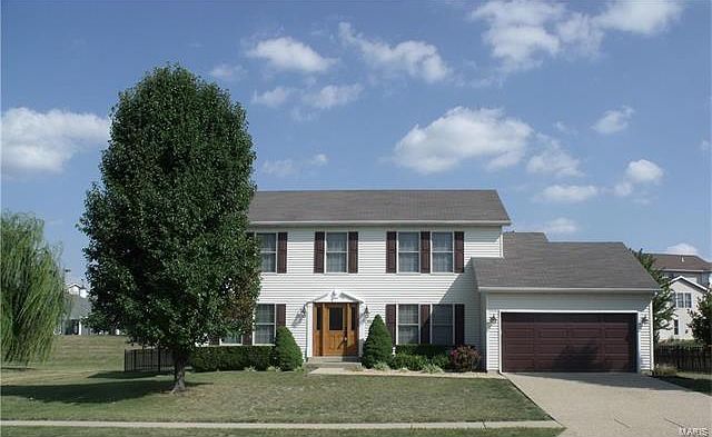 This beautifully maintained home offers 4 large bedrooms with excellent closet space, plus 2.5 baths! The Features include a HUGE Family Room with a gas fireplace & bay window that is completely open to the Large Kitchen with an island. You'll enjoy all of the counter space and cabinets in the Kitchen. The extra special kitchen also comes with all of the appliances and offers two separate pantry areas with lots of storage space, a desk area and even a dry bar. The Main Floor Laundry is oversized. You'll also love the large Master Suite with a walk-in closet and huge bathroom, offering dual sinks, separate shower and a fantastic large soaking tub! Eagles Landing Subdivision is only a couple minutes to Scott AFB and I-64, offering a Fantastic Community Pool for the Summer months that is right near the house. Make this home yours today!