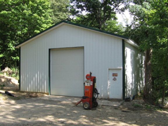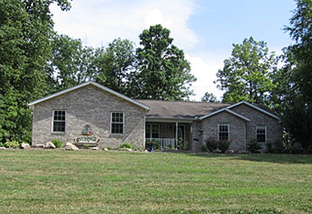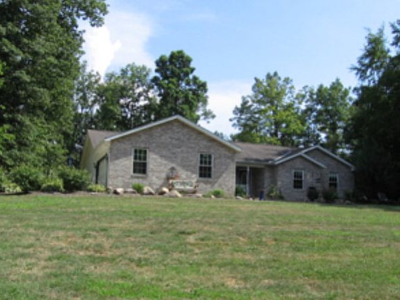 Nestled in wooded 3.47 acres, this brick & vinyl ranch offers master w/bath & walk-in closet. Oak cabinets in kit, solid oak doors, trim throughout. Beautiful stone fireplace in fam rm. 1st floor laundry. Walk-out bsmt. Home warranty. Heated 30x40 pole barn w/12,000 pound car lift-a mechanic's dream!