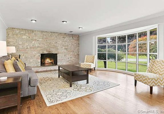 Conveniently located in the sought after Jane Ryan section of town, close to schools, parks, shopping, and highways. Home has been completely renovated in 2014. Spacious rooms, open floor plan, and large bay windows allow for the sun filled rooms. Two floor to ceiling wood-burning fireplaces, hardwood floors, central air, and crown moldings throughout. Large eat in kitchen with white cabinetry and black granite counters, tiled backsplashes, recessed lighting, and stainless appliances. Master bedroom with a walk in closet with a closet-made system, full renovated bath with white subway tiling, and Carrera marble counters. All the rooms are generous in size. Professionally finished walk out basement has a sunroom with sliders out to the stone patio. There is a rec/ play room that offers a floor to ceiling brick fireplace and a bar, children's play area, and a fully tiled full bath. SHOWINGS BEGIN TUESDAY 9/22 AT NOON.