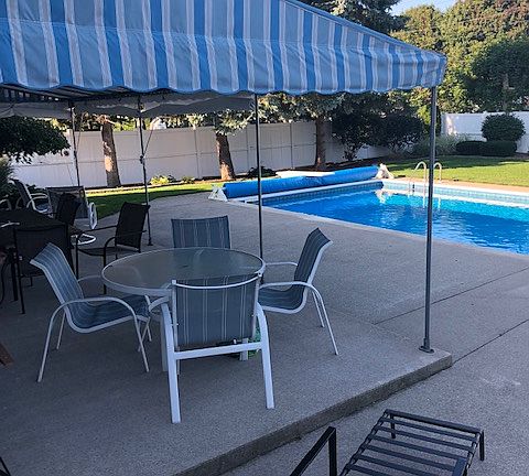 Updated colonial with in ground salt water pool with awning over patio on triple city lot. Large family room. 4 car tandem garage, near all city schools. Lovely street/neighborhood.