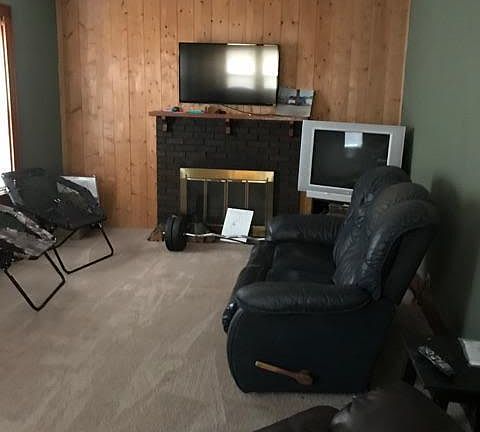 cute two bedroom home with formal dinning.hardwood floors though the house.wood burning fire place at the end of the livingroom.The three car garage is a big plus for the car buff.