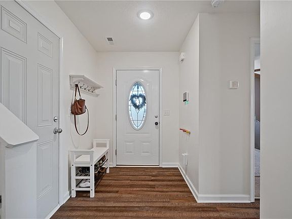 Welcome to this beautiful one-story home, designed for comfortable living and effortless entertaining. The spacious great room seamlessly connects to the kitchen, where you will find quartz countertops and tile backsplash. A generous dining area offers a picturesque view of the back deck, great for outdoor gatherings. This home features three bedrooms and two baths, including a well-appointed primary suite with an elegant trey ceiling and an ensuite bath complete with a double bowl vanity. Need extra space? The FROG provides a versatile bonus area—great for a home office, playroom, or additional living space. Situated on a tree-lined lot, this property boasts a partially fenced backyard, offering privacy while still maintaining an open and inviting outdoor setting. Don't miss the chance to make this lovely home yours!