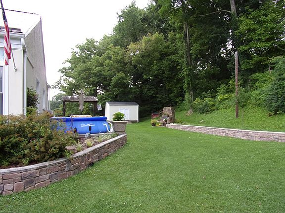 Immaculate One level home with lots of lots updates! Hardwood floors, HP, full basement, large level beautifully landscaped yard, 2 out buildings,walking distance to town amenities and stocked trout stream Wolf Creek.