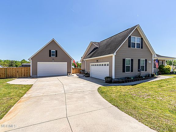 Welcome home to this adorable 3 bedroom 2 bath home with bonus room, 2 car garage - AND a huge detached 2 car garage as well! Over half an acre, screened in porch, deck and new privacy fence. Well maintained with covered front porch and extra long concrete driveway with room for multiple parking spaces. All 3 bedrooms are on the 1st floor and the bonus room is over the garage. Tiled flooring in bathrooms and kitchen, laminate in all other living areas and bedrooms. Roomy kitchen with Corian countertops and tile backsplash. Lots of cabinets and overlapping counter tops perfect for barstools. Cute breakfast nook overlooking the private backyard. Super close to MCAS and other bases, shopping, local amenities and 30 minutes to area beaches. No HOA, no city taxes and easy to make appointments. Hurry before this super cute home is gone!!