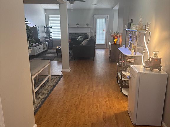 Great split floor plan with separate dining area. Kitchen has custom cabinets, breakfast bar and all electric appliances. Oversized laundry area with lots of shelving for added storage. Trey ceilings in tenant suite, double sinks, extra large garden tub and a large walk in closet with custom shelving. Backyard has patio and privacy fence. Yardwork to be completed Pets are subject to owners approval