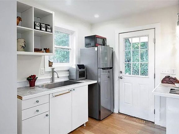 Modern two story tiny home with bedroom/bathroom/shower/washer-dryer combo downstairs and kitchen/living room/half bath/porch upstairs. This space includes a large finished attic space with plenty of room for storage and a small outdoor space for pets or modest outdoor furniture. The location is superb Walk half a mile up to Haywood Road for everything West Asheville has to offer (breweries, restaurants, bakeries, and grocery stores) or jump on Patton and be in the heart of downtown in 5 min. You're also just a 10 minute bike ride down to the River Arts district and greenway. Very close to Mission Hospital Utilities & Wifi Included (Heating, electricity, water, garbage, Wifi) Pet Friendly Finished Attic / Loft (meditation, yoga, storage) In-Unit Washer & Dryer No Dishwasher No Smoking Inside Porch with lounge chair included Lawn care not included (electric Mower & Weed Whacker available to use) 12 Month lease