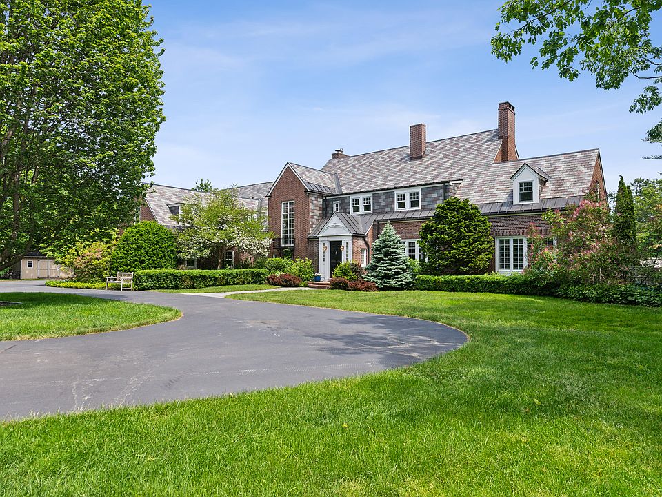 This timeless 1927 brick & slate home is one of Falmouth Foreside's original waterfront estates. The property exudes an elegance and sense of place hard to find in today's world. Inside, the home has retained all its original proportions, with modern updates to accent its enduring appeal. The updated kitchen is a culinary dream, featuring granite counters, Thermador gas range, & elegant ivory cabinetry highlighted by two arched glass-front cabinets. An island, sunny breakfast nook, & a cozy gas fireplace create a warm & inviting atmosphere. The home's sophistication continues with handsome dark hardwood floors & exquisite crown molding that flow throughout. Adjacent to the kitchen is the formal dining room, adorned with wainscoting & a gas fireplace. French doors lead to the expansive living room, which features a gas fireplace and double doors that open to the patio, fountain, & fire pit area, offering seamless indoor-outdoor living. The sun room features built-ins, a gas fireplace, and stylish tile floors with radiant heat. The stately office with exquisite floor-to-ceiling woodwork offers a distinguished place to peacefully complete your day's work. An equally impressive upper level features a large master suite complete with gas fireplace, private balcony accessible from the bedroom & from the luxurious attached primary bath which has double vanities, window side soaking tub, separate tiled shower, & a large walk-in closet. Additional bedrooms, including two ensuites, are spacious & well-appointed. Completing the upper level is the grand media room with another gas fireplace & a state-of-the-art golf simulator. Outside, the beautifully maintained grounds are highlighted by stone walls, garden beds, the inviting patio, a sparkling gunite pool & hot tub, outdoor shower, & a sweeping yard that leads to the dock and private water access. Remarkably convenient to Falmouth amenities, downtown Portland, & the airport, yet retaining the quiet & privacy of its origins