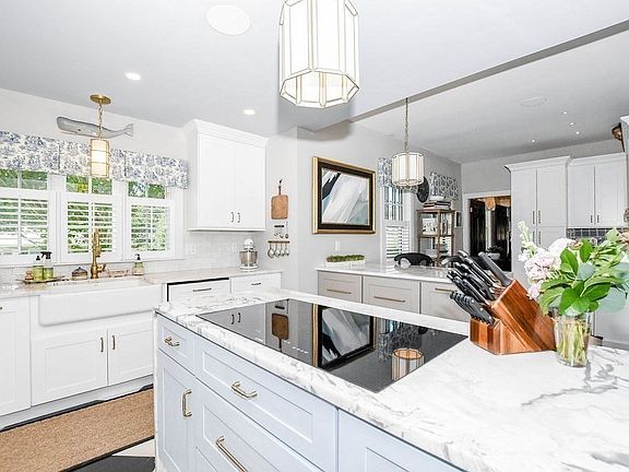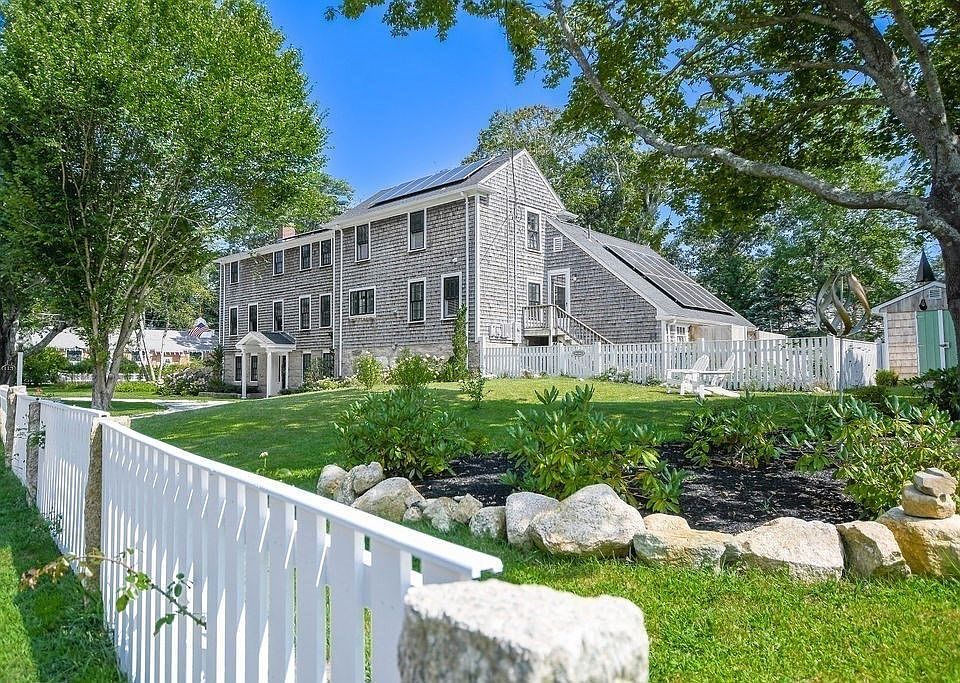 History & heritage epitomize this distinctive Colonial. Built in 1813 by whaling captain John Pitcher, brother of Elizabeth Pitcher Tabor, this elegant home nestled in the heart of Marion village has been recently transformed into an architectural masterpiece. The 4-bedroom, 6-bath residence exudes cozy comfort from every corner, seamlessly blending modern amenities with old-world charm. A sweeping curved staircase leads to an exquisite kitchen featuring top-of-the-line Bosch appliances, induction cooktop, double ovens, quartzite waterfall-edged counters & a black & white hand painted checkered floor. The gracious fireplaced dining room w/ crystal chandelier leads into a custom bar & stunning fireplaced living area. Also featured: 3 ensuites w/ custom marble floored baths, accessory apartment, solar panels, outdoor shower, all new roof & Marvin windows! Make this spectacular village classic, located a 1/2 mile from the beach, a place to call home