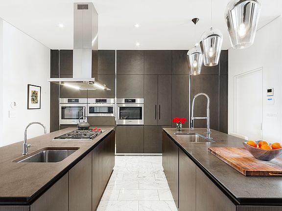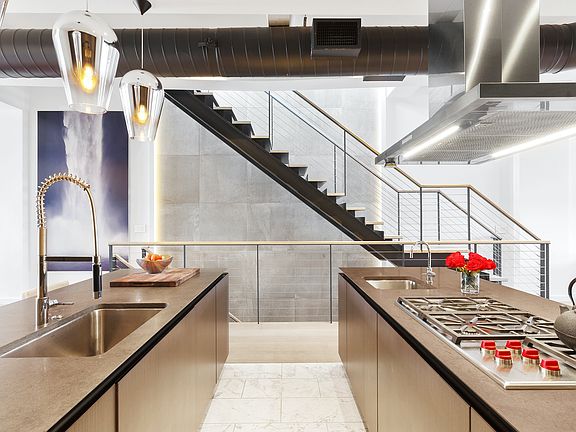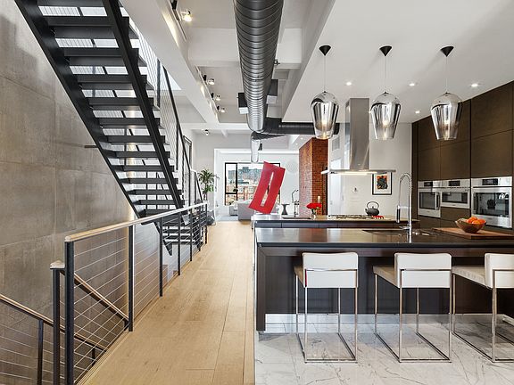 STUNNINGLY REIMAGINED MODERN FOUR STORY TOWNHOUSE WITH OVER 6,000 SQUARE FEET OF LUXURY LIVING WITH FOUR CAR GARAGE, INDOOR POOL, SAUNA, GYM, FOUR OUTDOOR TERRACES, FOUR FIREPLACES, FOUR BEDROOM 4.5 BATHS, AND ELEVATOR IN LOFT LIKE CONTEMPORARY SPACE. PREPARE TO BE COMPLETELY WOWED. WELCOME TO 113 GRAND STREET. This four-story 25x100 townhome in downtown Hoboken, has been completely renovated and designed by its current owner. Exuding contemporary style, with loft-like industrial character while also offering every modern luxury one could imagine, this historic property was originally built in 1897, and served as a milk-bottling plant before being converted to residential property with three residential units. Eventually the former owners created a one family home, and upon purchase, the current owners gut-renovated and redesigned the space with the utmost care to create an expansive open floor plan home. From millwork and tiling to plumbing and lighting, repositioning of stair well for ultimate light, no detail was overlooked and no expense was spared in the renovations with the highest end materials and fixtures throughout. All including a strong emphasis on design aesthetic with use of the full lot coverage. This is evident as you enter the main living space and feel the soaring ceilings ranging from 11 to 14 feet as they enhance the airy, loft-like character of the home, while multiple skylights, floating stairs, and glass walls and doors ensure sunlight throughout. Upon entry, a private elevator brings you from the first level to the third, which comprises the main living areas. The spacious kitchen, designed by Italian design house RIFRA, includes dual Islands, Basaltina countertops, Calacatta marble flooring, a walk-in pantry, and Bosch and Miele appliances. The kitchen is flanked by the living room, dining room, and media room, each with its own fireplace. Included on this level are a study, powder room, pantry, wet bar with a 504-bottle wine wall, exposed brick, and a 250-square-foot terrace with Ipe decking and an irrigation system. All in an open floor plan with an amazing flow. Continue the indoor/outdoor inspiration as you reach the top floor which features two rooftop terraces totaling 1557 square feet, with shaded seating, dining area, an outdoor fireplace, and audio with an additional rooftop Zen tranquility space. An indoor/outdoor kitchen also by RIFRA with SubZero and Wolf, adds convenience, while a dual use recreation room with a pool table, hidden dartboard wall, and TV wall makes the space perfect for game entertaining. Alternatively, this level also features a walnut-finish folding wall that allows the creation of an extra en-suite bedroom with a walk-in closet, full bath and can be a perfect guest or permanent fourth bedroom. All of the glass doors throughout the home are European Nano doors that allow nature and design to become one. On level two are the private quarters of the home, including a seating area, art wall, spacious guest suite en suite, with masterful bath and exposed brick, secondary en-suite bedroom, and dedicated laundry room with floor-to-ceiling cabinetry. Quiet and far removed from the street and the other rooms is the majestic master suite, featuring an expansive bedroom with 13' ceilings, seating area with a fireplace, walnut canopy above the bed, large walk-in closet with vanity counter, and luxurious marble-clad bathroom with heated flooring, twin showers, and free-standing tub. Completing the master suite is a peaceful terrace, ideal to greet the day with coffee in hand. Lastly, level one features a marble-tiled entry hallway, gym, "man cave" paying homage to the automobile, showroom-quality garage for four vehicles, storage room, and an air-conditioned and indoor pool room with a heated Endless pool, shower, and sauna. This Extraordinary home features a top-of-the-line security system with cameras, perimeter protection, motion sensors, intercom, and 24/7 monitoring. Situated off of 1st and Grand, in the heart of downtown Hoboken, with an easy walk to the PATH Trains, NJ Transit Trains, and Buses, and Holland Tunnel and NJ Highways all within a few blocks away. You will be amazed.