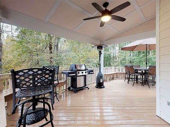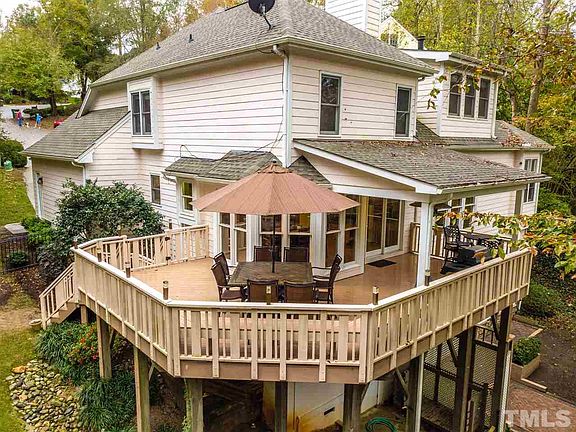 Your Beautiful Mountain Retreat in the Heart of Cary. The Large 600 sq ft partially covered deck, looks out to open space with unparalleled beautiful wooded views. Floor to Ceiling Windows on back of home. 1st Floor Office & Master with romantic fireplace. Fireplace 2 in Living Room. Fireplace 3, a 13 ft Stacked Stone in Finished walk out basement. Vaulted Ceilings Throughout. Dream Playhouse in Bonus room. Fenced Yard. Workshop with Heat & A/C. Roof 2016, new Heat & A/C on 1st. Built in speaker system.