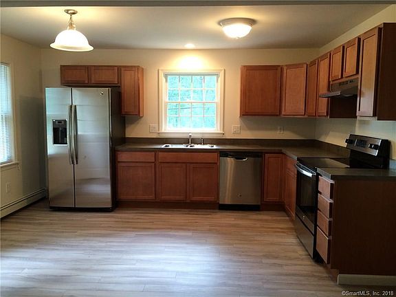 100% rebuilt in 2015. 3-bedroom/1-bath home. Carpet in living room and bedrooms. Gorgeous eat-in kitchen with stainless steel appliances. Washer/dryer hook-ups in the unfinished basement, which has tons of storage space. Windows are window-unit-ac-friendly. Small usable yard, large deck, and tenants enjoy beach rights in Candlewood Lake Estates, just a short drive away. Please note that this home has a Sherman mailing address. Tenants with children should confirm school attendance information. Landlord will consider pets. Carpets will be professionally cleaned prior to occupancy. Yard will be re-seeded. Photos show the home furnished and unfurnished.