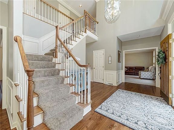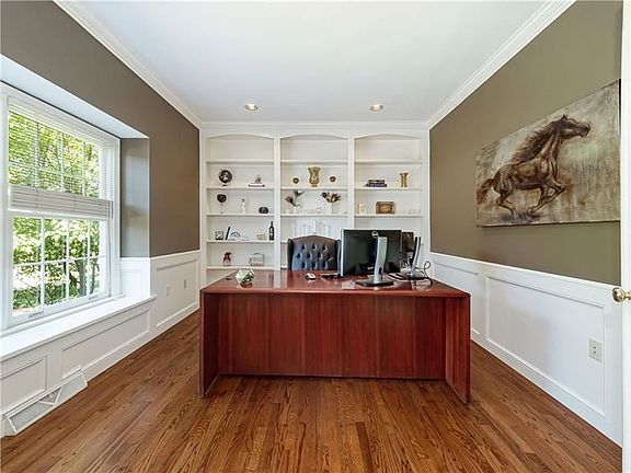 Gorgeous all brick home with great curb appeal in a wonderful neighborhood! Custom details throughout. Private level, fenced park-like back yard w/patio and gazebo. Beautiful thick crown moldings thru out.. Open 2 story foyer & staircase. Den w/built in book cases. Living room w/ palladium windows open to the formal dining room. Gourmet kitchen features granite counter tops, wood cabinets, center island and breakfast area. Open to the family room w/ gas fireplace. Owners suite w/lighted tray ceiling. Updated bath w/whirlpool tub, shower w/glass enclosure. Second bedroom w/full bath. Two additional bedrooms, hall bath and laundry room complete the 2nd level. Newly finished game room w wet bar, kitchenette and bath. 3 car oversized garage.