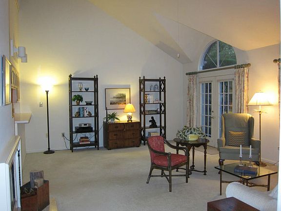 Light filled 2 BR, 2.5 bath Condo. Very well maintained and clean! 1st floor master suite w/2 large walk-in closets, spa whirlpool tub and shower. LR w/marble fireplace. Walkout to private patio with retractable awning. 2nd floor loft, bedroom, and full bath. One car garage. Loads of storage space, attic, shed, closets etc. New roof in 2010.