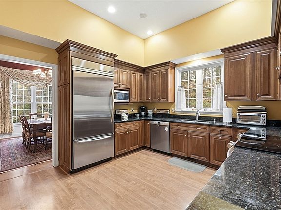 Discover the perfect blend of comfort and elegance in this rare two-story home featuring a sought-after first-floor primary suite. Step inside to soaring cathedral ceilings and 9-foot first-floor ceilings that create an open, airy feel. The primary bedroom offers a peaceful retreat with tray ceilings, a spacious walk-in closet, and a luxurious bath complete with a jacuzzi tub and stand-up shower. The kitchen impresses with cherry cabinetry, granite counters, and abundant space for those who love to cook or entertain. Enjoy meals in the formal dining room with cathedral ceilings or the cozy breakfast nook overlooking the backyard. The living room features a propane fireplace and an open staircase leading to three additional bedrooms, a family room, and a full bath upstairs. A first-floor study, finished basement, and outdoor deck with an in-ground pool make this home ideal for work, play, and entertaining all year long. Extra land available if there is interest.