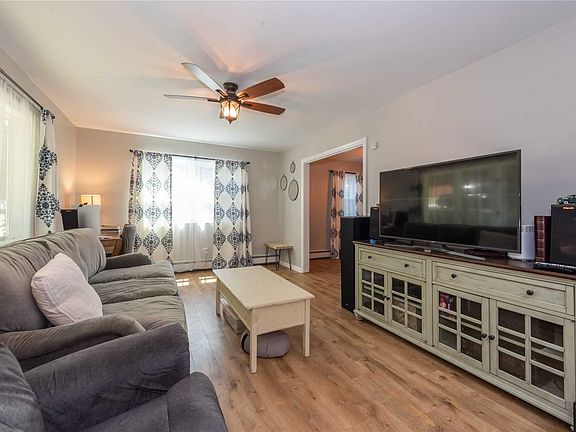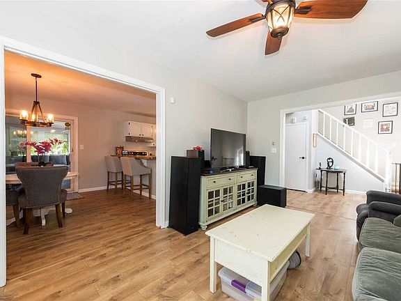 Welcome Home! Beautiful spacious and renovated wideline cape located on a quiet street in San Remo section of Kings Park. New flooring throughout the main level and basement, 200 AMP electric, and architectural roof, All appliances are less than 6 years old, 6 ductless AC units throughout the house. High ceilings and skylight in foyer open to Livingroom leading to dining room and a Lovely eat-in -kitchen with all stainless steel appliances with new butcher block countertops, sliding doors that lead into a bright enclosed porch and sunny deck. First floor master with another 1st floor bedroom, and a full bathroom (only 3 months old) 2 additional bedrooms on second floor each have skylight, plenty of storage throughout. Windows are triple pane glass recently installed. This is a must see !!!!!
