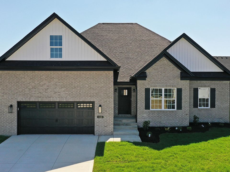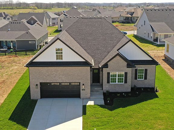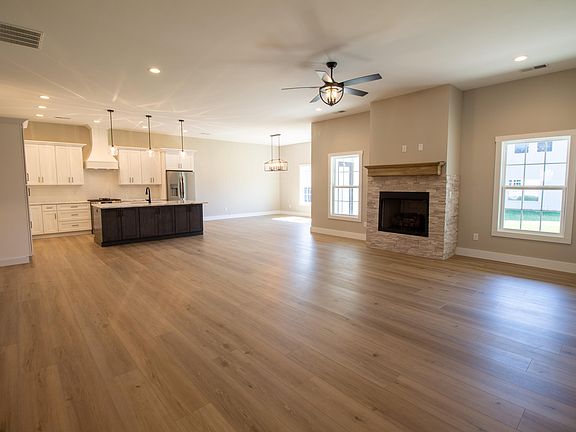Special Reduced Financing Offer Available through Builder. - No detail spared in this Craftsman Ranch home by JLB Builders in the picturesque Burley Ridge subdivision. It starts outside with the 3-side brick exterior with black gutters & accents, and covered back patio. The wide open living areas offer 10' ceilings, fireplace with gas logs, stone surround and wood mantle, cork-backed LVP flooring, and upgraded lighting. The open kitchen features shaker style tall cabinets with soft-close doors and drawers, cabinet-grade, vented hood, large island, composite sink, marble countertops, herringbone tile backsplash, Frigidaire Gallery appliances and Gas Range. The master bedroom has a 9' tray ceiling and large walk-in closet. The craftsman barn door opens to a large master bathroom with tiled floors, double-bowl vanity, large, tiled shower with inset and glass door. The additional 3 bedrooms are spacious and offer LVP floors and fan/light packages. The 2nd bathroom has double-bowl vanity and tub/shower tiled to the ceiling. There is a separate laundry room, guest 1/2 bath and cubby area for coats and storage.