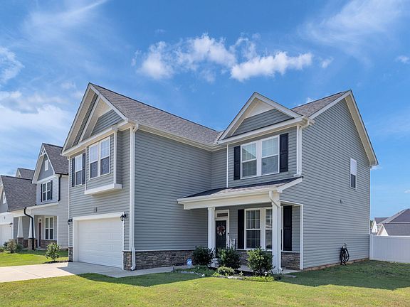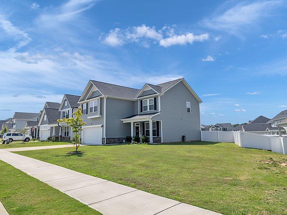 This Spotless three year old Move-In Ready home in the Villages of Wilsons Mills features four bedrooms, two and one half bathrooms with Breakfast room and dining room and garage. Relax in the ample Living Room with fireplace which is open to the Breakfast room and Kitchen. The Kitchen boast gorgeous granite countertops, gray cabinets and stainless steel appliances The second floor offers a Spacious Primary Suite with beautiful dual vanity, tub and shower, three additional bedrooms which could be used as an office or flex space. Enjoy entertaining? Spend time outdoors in the large backyard which is surrounded by a 6' White Vinyl Privacy Fence. You owe it to yourself to see this home in person.
