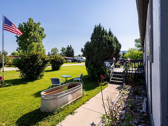 For more information, please contact listing agents Scot Munro 605-641-6482 or Heath Gran 605-209-2052 with Great Peaks Realty. Make your start here with this well-maintained 3 bed, 2 bath manufactured home on a spacious level 0.24 acre lot with mature trees and a private back yard! The property features a permanent foundation with concrete pillars, 2x6 constructed walls, and a new roof in 2020. Enjoy the kitchen with a sit-up bar, a cozy den with wet bar and sink, and a walk-in closet in the primary suite. Relax year-round with a 3-season porch in the back and a welcoming front deck. There's plenty of space to garden, park, build a garage, plus a handy shed provides for extra storage.