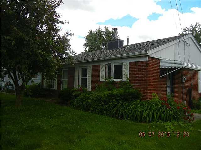 Brick 3 bedroom ranch on double lot. Nice concrete driveway to vinyl sided 2 car garage. 2 blocks from center of town and library. Please provide proof of funds with offer.