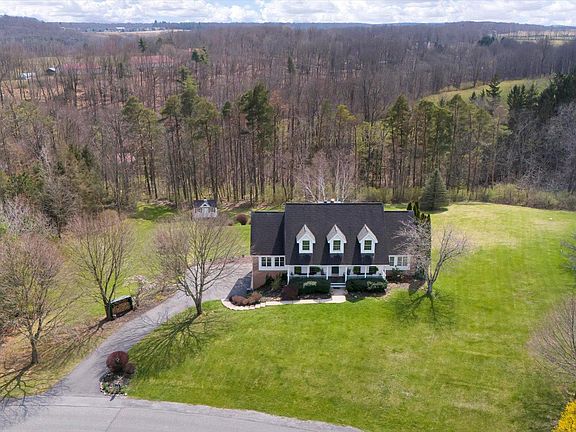 Tranquility and comfort await in this charming Cape Cod style home nestled on an oversized 1.24-acre lot within the esteemed Graycairn neighborhood. Impeccable curb appeal greets you, boasting nearly 3,000 sq.ft. of meticulously designed above-grade finished space. This 5 bedroom, 2.5 bathroom home is enhanced by breathtaking natural features and oak hardwood floors that grace the interior throughout. A recent kitchen remodel showcases modern elegance, complemented by granite countertops, soft close cabinets, a convenient wine bar and a sliding door to the private back deck offering serene views of the lush backyard space. Indulge in the warmth of a cozy wood fireplace in the main living area with room to entertain guests and a dining area adjacent. Enter into the primary suite with a recently remodeled bathroom featuring stunning tile surround, jetted tub, and glass shower. Wired for sound throughout, this home is an entertainer's dream, with an open and connected floor plan seamlessly tying the first and second floors. Additional features include four additional bedrooms on the second floor, skylights in the second-floor bathroom, and oversized windows bathing the first floor in natural light. Partially finished basement space for you to unwind and relax along with a workshop space to complete the lower level. Efficiency is paramount with a whole house fan for spring and fall comfort, as well as a brand new heat pump. Conveniently located only 8 miles from Beaver Stadium in the State College Area School District, this home offers the perfect combination of tranquility and accessibility. Don't miss the opportunity to make this your dream retreat!