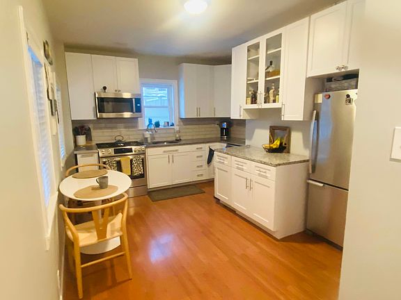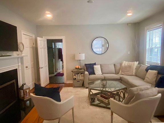 Separate entrance 1 bedroom boasts recently updated kitchen, spacious living area, a serene garden & your own private patio! Eat-in kitchen w/ granite counters, white cabinetry, subway tile backsplash & Bosch appliances. A serene private patio & garden off the kitchen is the ideal place for entertaining or simply relaxing. Expansive living room w/pristine wide pine flooring, high ceilings & gas fireplace adorned with white wood mantle. Spacious bedroom (can fit a king bed) with lots of natural light from windows on 2 sides w/ensuite bath, wide pine floors, a decorative fireplace with marble mantle, 2 closets plus a floor to ceiling built-in closet for added storage. Sizable bath has shower encased in glass, tile flooring & pedestal sink. W/D in unit. Central location & close to the Bunker Hill Monument, Charlestown's shops, restaurants & public transportation, this beautiful apartment features high ceilings, wide pine flooring, central A/C, abundant closets and additional basement storage. Pet friendly with restrictions. Flexible move-in date. On-street parking. Renter is responsible for cable, gas, electric. 1st month/last month/security deposit due at signing. NO smoking allowed on premise of property. Pet friendly with restrictions. 1 year lease--flexible timeframe for Jan or Feb 2025. Credit, background, and reference check required