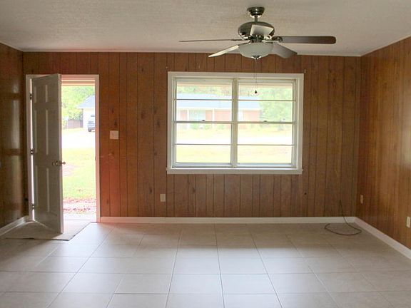 Large 4 bedroom, 3 full bath home- move in ready! With tile floors, open floor plan in kitchen/dining/living room. Single carport and outside storage room.
