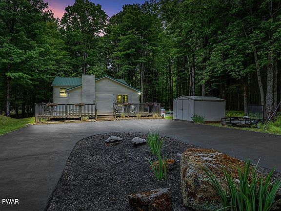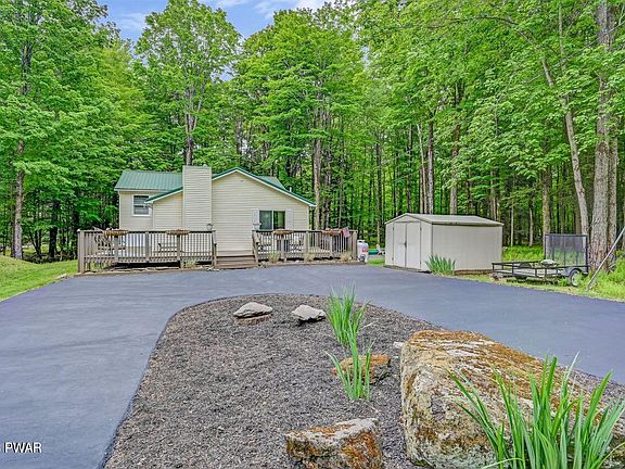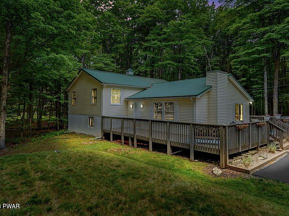 WELCOME HOME to this lovely 3 bedroom 2 bath home in Lake Wallenpaupack Estates with a DOUBLE LOT! This home has so much to offer including PRIVACY, a BONUS room that can be used as a 4th BEDROOM, an office, a nursery, a walk-in closet, a LAUNDRY ROOM - yes, there is a hook-up!! you name it! The wrap-around deck has all of the room you need to enjoy your quiet, peaceful relaxation or enjoy nights out at your firepit! There is no shortage of parking here with a newly resealed PAVED circle driveway!! I can't describe enough the lovely updates and design features this home has! From the floors to the walls to the ceilings! Enjoy the FINISHED LOWER LEVEL to watch TV and add a pool table for game nights! Schedule your showing TODAY while you can!, Beds Description: 2+BED 2nd, Baths: 2 Bath Lev 2, Eating Area: Dining Area
