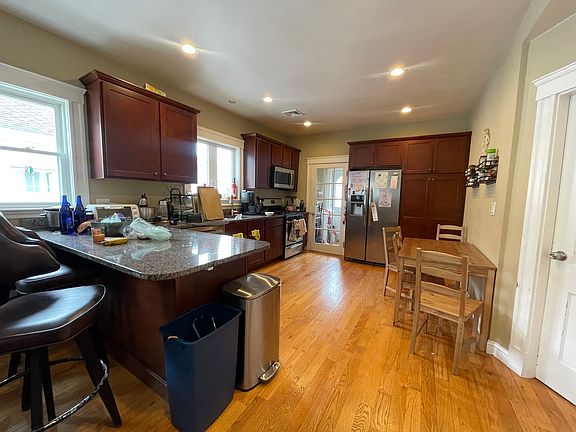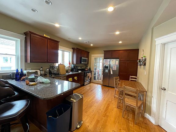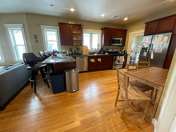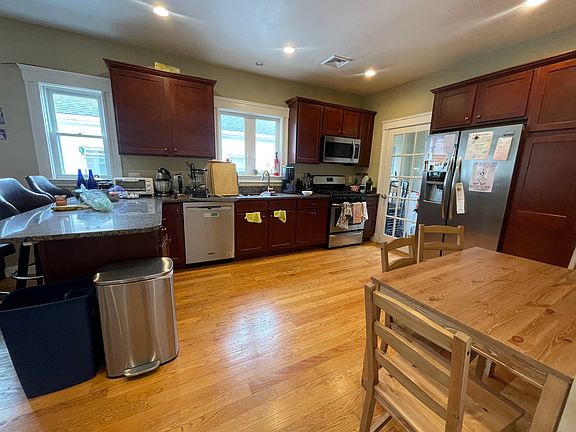 Spacious 4-Bedroom Available 9/1! This beautifully maintained home features high ceilings, abundant natural light, and generously sized bedrooms. Perfect for entertaining, the large dining room flows effortlessly into an eat-in kitchen with ample counter space, gas range, and dishwasher. The primary bedroom includes a ceiling fan and plenty of storage. Enjoy the exclusive laundry and additional storage in the basement, and unwind in the gorgeous backyard complete with a patio and grilling area a rare find! - Great size 4 bedrooms with great closet space - Great size living room - Eat-in kitchen - Front and back porch - Recessed lighting - Free washer and dryer in basement - Call or email for showings