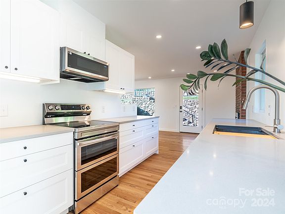 WHAT A FIND! This completely renovated 1974 home has some great mid-century flare with modern updates. 2 bedrooms/1 full bath on main level w/ the living/dining/kitchen. An incredible wrap around NEW deck with hand-forged steel railings, boasting views of multiple mountain ranges, including Mt Pisgah & Cold Mtn. Lower level is cork flooring, large primary suite w/walk in closet, bonus area and large laundry & storage area. Close to charming downtown Canton w/breweries & multiple new parks/playgrounds. From quartz countertops to high-end lighting, Duravit tubs/toilets…everything in this home has been replaced, even the drywall, electrical & plumbing. This is a must see!