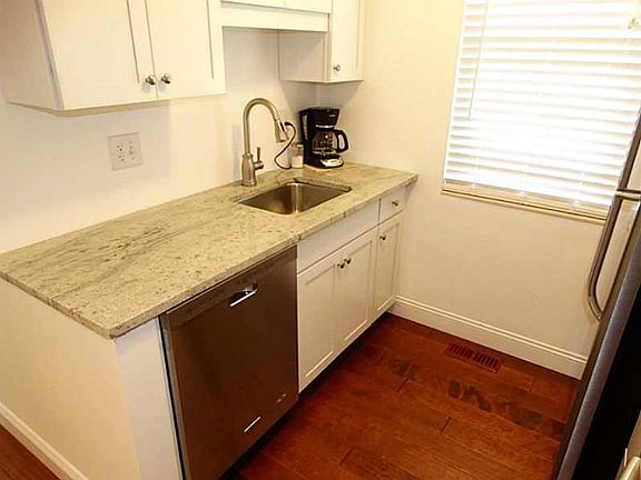 Okay, this is a fantastic opportunity in Seven Fields. This updated 2BR end unit townhome has experienced a wonderful kitchen face lift that you will just love. How nice will it be to move right into this sparkling new kitchen with brand new cabinets and a new granite counter top that shines next to the new stainless steel appliances - wow! The white trim stands out next to the new engineered hardwood floors and gives this home a brand new look. Situated on a private cul-de-sac in the popular Seven Fields community, you will enjoy the extra space and privacy due to the position of the end unit. There is a tree lined wooded buffer at the end of the lot and there is plenty of green space just steps away out your wonderful walk-out finished basement. The covered front entry and the mostly brick finish give this home very nice curb appeal. Both bedrooms have plenty of space and clean carpets with vinyl windows and the master bedroom enjoys a ceiling fan and an extra make-up/dressing vanity. The basement is finished with a wet bar and a cozy corner gas fireplace. There is plenty of storage space on the lower level as well. The HOA covers the grass cutting and roof maintenance and for a small amount you can join the large community pool that is in walking distance. The sidewalk street community enjoys multiple playgrounds, pavilions, basketball, baseball, and soccer fields along with yearly fireworks and summer activities. This is the complete package of perfect location, perfect updates, and a move-in ready home that will make this one go very fast.