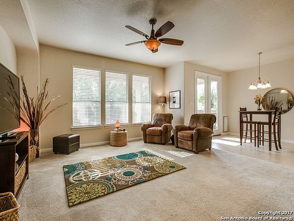 Lovely two story home boasts open living concept with chef's kitchen with silestone counters, stainless appliances, smooth cooktop,pendant lights & walk-in pantry. Downstairs master suite with great closet space and pretty bath. Private study. Nicely sized secondary bedrooms and upstairs big game room with full bath. Covered back patio with fan overlooks the richly landscaped backyard. Walking distance to Cibolo Elementary with pool, playground and sports court as part of the HOA amenities.