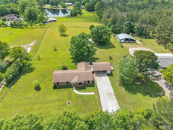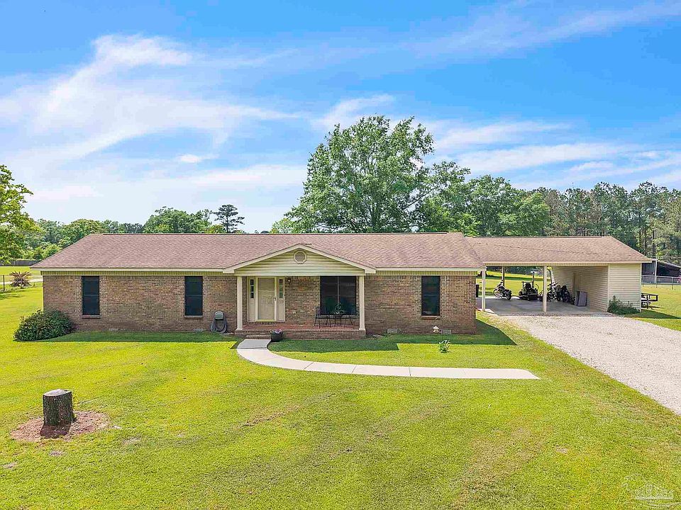 Peaceful 2.10 Acres with Move-In Ready Home – Just Outside Atmore, AL Set just five minutes from downtown Atmore, this beautiful 2.10-acre property offers the perfect balance of quiet country living and close-to-town convenience. Mostly cleared and dotted with mature shade trees, the land is wide open, scenic, and full of potential—ideal for gardening, outdoor projects, or simply enjoying the space around you. The 3 bedroom, 2 bathroom home features over 1,800 square feet with a spacious open layout designed for comfortable living and easy entertaining. A welcoming foyer leads to a bright living and dining area centered around a cozy gas log fireplace. The kitchen is functional and flows seamlessly to the covered back patio, perfect for outdoor dining or unwinding in the evenings. Recent updates include a new roof, central heating and air unit installed in 2018, and a septic system with new field lines, cleaned in May 2019. The washer and dryer will convey, offering added convenience for the next owner. The property is partially fenced on three sides, and includes two storage buildings (8x10 and 5x7) plus extra storage space off the double carport. A moisture barrier has been installed underneath the home, and a termite bond through Orkin is in place for peace of mind. If you're looking for space to spread out without giving up location or comfort, this one checks all the boxes. Come see the beauty of this land and everything it has to offer—schedule your tour today!