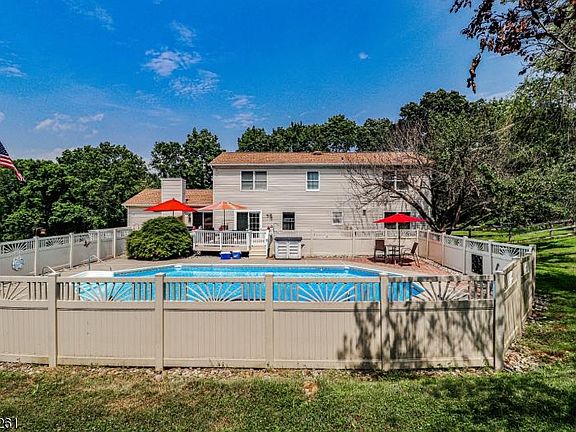 3100+ sq. ft. Colonial in a beautiful country setting. This home will not disappoint, meticulously maintained w/ many updates. Perfect for large gatherings indoors and out. 13x34 eat-in kitchen w/ ss appliances & granite counter tops. 21x24 Family room w/ high ceiling, gas fireplace and hardwood flooring under carpet. Master bedroom en-suite, includes walk-in closet and beautiful updated bathroom w/ separate vanity. Resort style private back yard w/ heated in-ground pool, new deck leading to kitchen/ family room and fenced in back yard. Updates include, newer roof, updated bathrooms, generator w/ hook-up, Roth oil tank & water softener. It's the perfect home surrounding rural living where you can relax, enjoy and yet still be conveniently located within 10 mins to Rt. 46 Hackettstown/shopping.