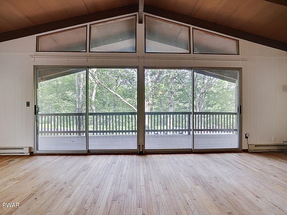 Welcome to your serene retreat in the Hemlock Farms Community Association! This enchanting home offers a perfect blend of rustic charm and modern comfort, nestled among nature with an inviting treehouse feel. Combined with having 3-bedrooms, 2 full bathrooms and 2 living areas, this home features an additional room with a closet, ideal for a guest space, home office, or any flexible use to suit your family's needs. With abundant natural light and a wrap-around deck, you can enjoy the beauty of the surrounding nature from every angle.Inside, you'll find vaulted ceilings that create an airy, open atmosphere in the main living areas. The home boasts wood floors and accents that add a touch of rustic elegance, complemented by modern touches throughout. Spacious living areas on both levels provide ample room for family gatherings and entertaining, while expansive sliding glass doors seamlessly connect indoor spaces to the great outdoors. The paved driveway, stone walkway, and well-maintained crawl space further enhance the home's appeal and functionality.Living in Hemlock Farms means access to an array of exceptional amenities. Stay active with the state-of-the-art fitness center and a variety of fitness classes, or relax in the indoor and outdoor pools, sauna, and steam room. Enjoy the community's beautiful lakes, outdoor sports facilities, and scenic hiking trails. With 24-hour security and a vibrant calendar of community events and activities, you'll experience a strong sense of community and peace of mind.This well-maintained home, set back off the road for added privacy and tranquility, offers a peaceful lifestyle in a picturesque setting. Don't miss the opportunity to make this beautiful house your home.