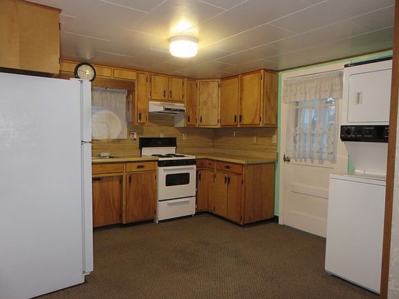 Cute as can be - exterior is vinyl, newer roof, fenced in back yard, and matching garage. This 2 BD 1 Bath home is solid and clean - completely ready to move in. Bath utilities averaging $127/month over past 2 years. Nice kitchen w/all appliances, stackable W/D, renovated full bath w/handicap shower, dining area, good sized living room, and two BD's - both w/closets. Newer thermal vinyl windows, new furnace 2009, newer hot water tank. Built in wall A/C unit, 100 amp CB electric service. Detached garage is in great condition with remote opener. Don't miss this great opportunity!