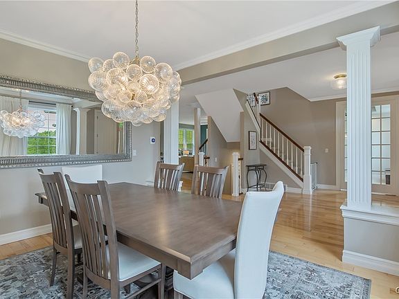 Don't miss this stunning 4-bedroom, 4 full bath home on over an acre in the Chittenango School District! This home is located on a quiet cul-de-sac with exceptional views that are sure to impress! This spacious, well-maintained property features an abundance of natural light, beautiful birch hardwood floors, and high ceilings, some of which are elegant tray ceilings that add architectural charm throughout! The open kitchen is the heart of the home, offering an island with seating area, granite countertops, stainless steel appliances, wood cabinetry, pantry, and a bright morning room overlooking the private backyard- perfect for both everyday living and entertaining! A formal dining room provides a great setting for gatherings, while a first-floor bonus room with pocket doors offers flexibility as a home office, playroom, or den! Convenient first-floor laundry completes the main level! Upstairs, the primary suite features a walk-in closet and a brand new en suite bath with a walk-in shower, soaking tub, and modern finishes! The fully finished basement adds approximately 1,500 more square feet that is not included in the total square footage, bringing the total square footage to approximately 4,600 sqft! This space includes another living room with a built-in bar, gas fireplace, home gym, a full bathroom and a potential 5th bedroom or in-law suite! Step outside to a stamp concrete patio and enjoy the peaceful private yard! An attached 3-car garage provides plenty of room for parking, storage, or hobbies! Conveniently located on the outskirts of the Village of Chittenango and near major routes- this home truly has it all! Best and Final Offer Deadline Sunday 6/15 @ 7pm!
