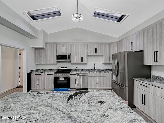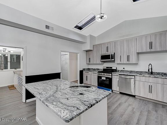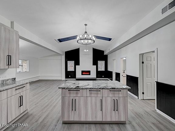 Entertainment Spaces: Large deck and a newly added 4-season room, ideal for entertaining year-round Kitchen: Newly renovated with new cabinets, stainless steel (SS) appliances, a farmhouse sink, and large beams throughout the open concept design Brick-faced electric burning fireplac that enhances the rustic charm of the home